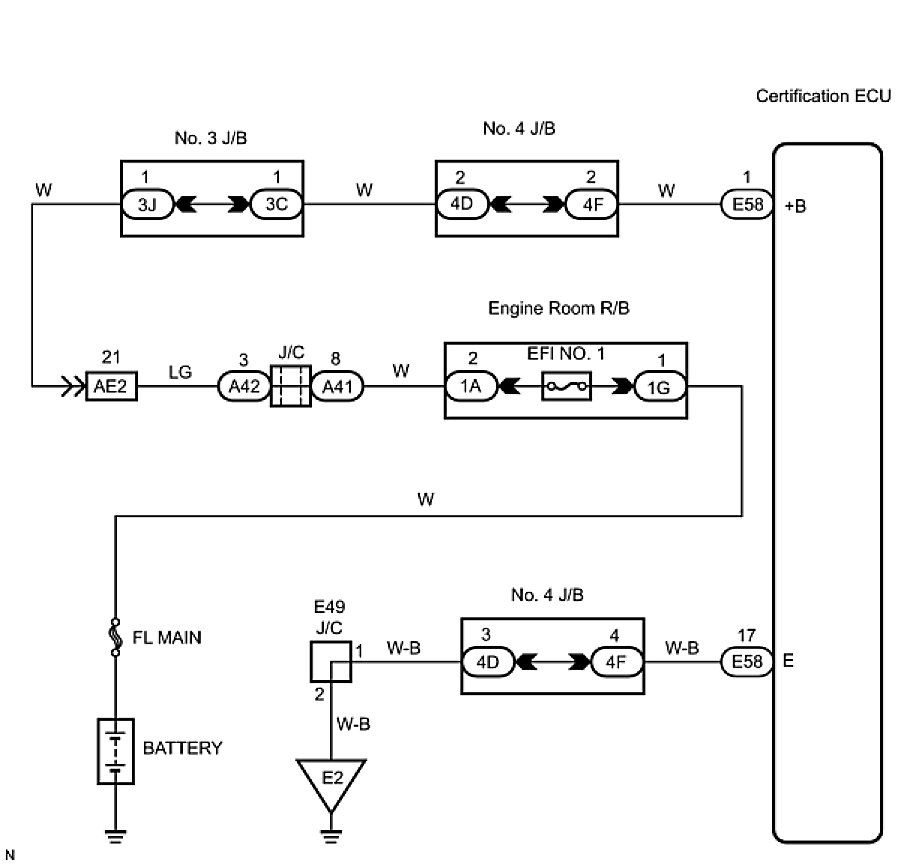 2. CHECK WIRE HARNESS (CERTIFICATION ECU - BATTERY)