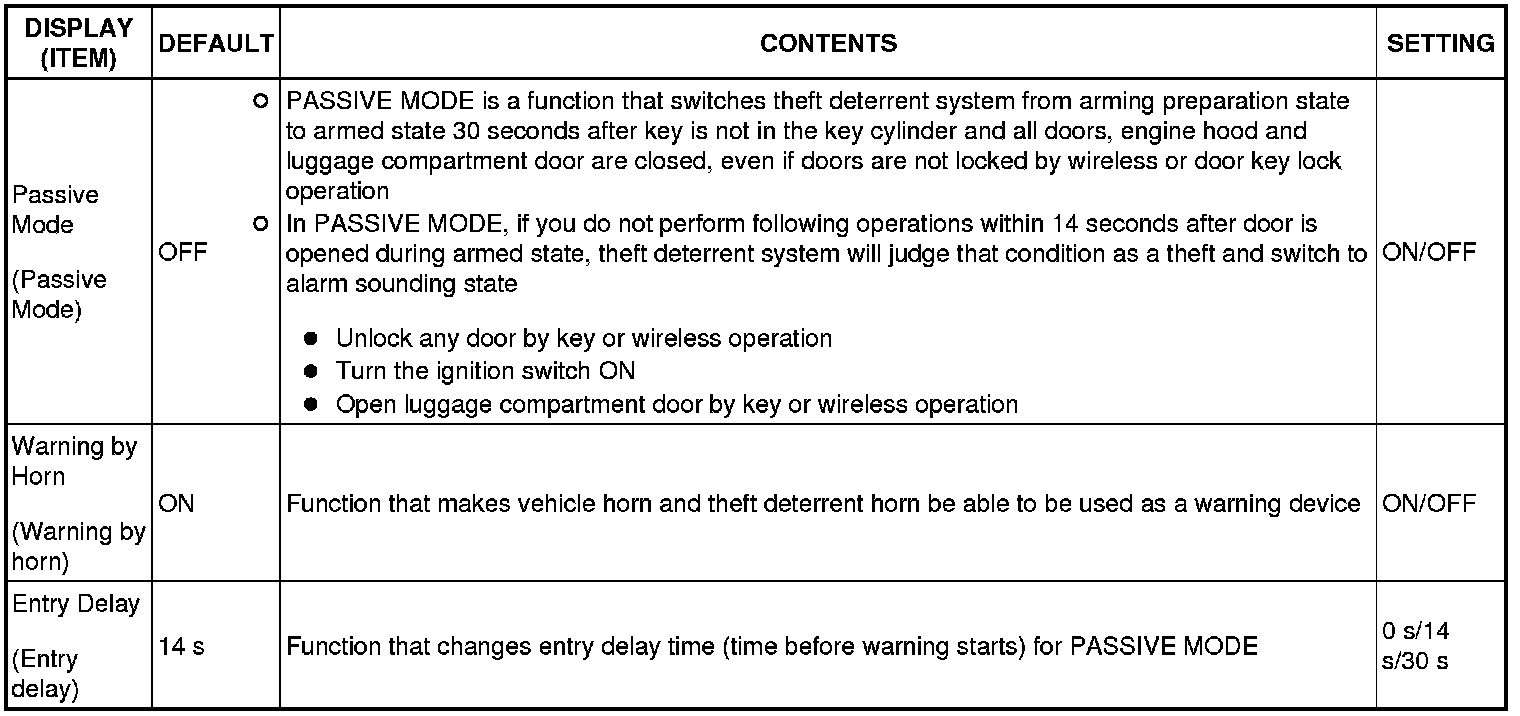 THEFT DETERRENT SYSTEM (w/o Smart Key System):