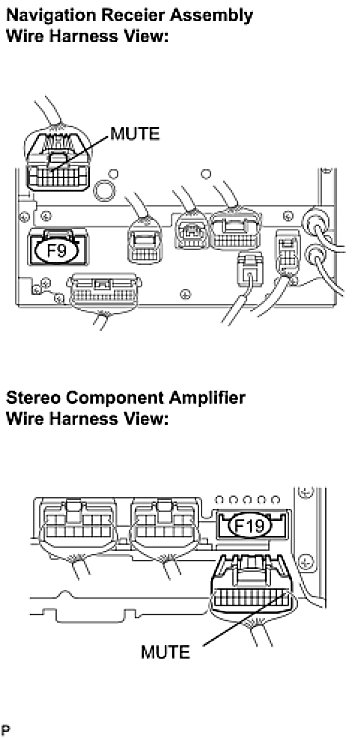 (a) Disconnect the navigation receiver assembly connector F9 and stereo component amplifier connector F19.