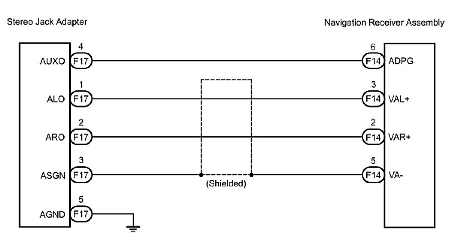 Sound Signal Circuit Between Navigation Receiver Assembly and Stereo Jack Adapter