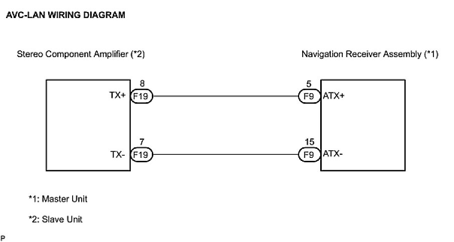 (a) Referring to the AVC-LAN wiring diagram below, check the AVC-LAN circuit between the navigation receiver assembly and the component shown by the sub-code.