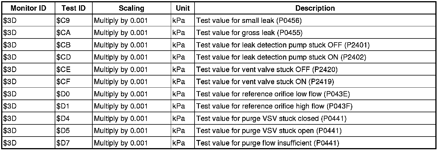 If you use a generic scan tool, multiply the test value by the scaling value listed below.
