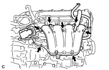 Install the intake manifold with the 5 bolts and 2 nuts.
