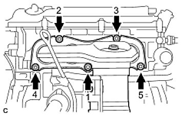 Tighten the 5 nuts in the sequence shown in the illustration.