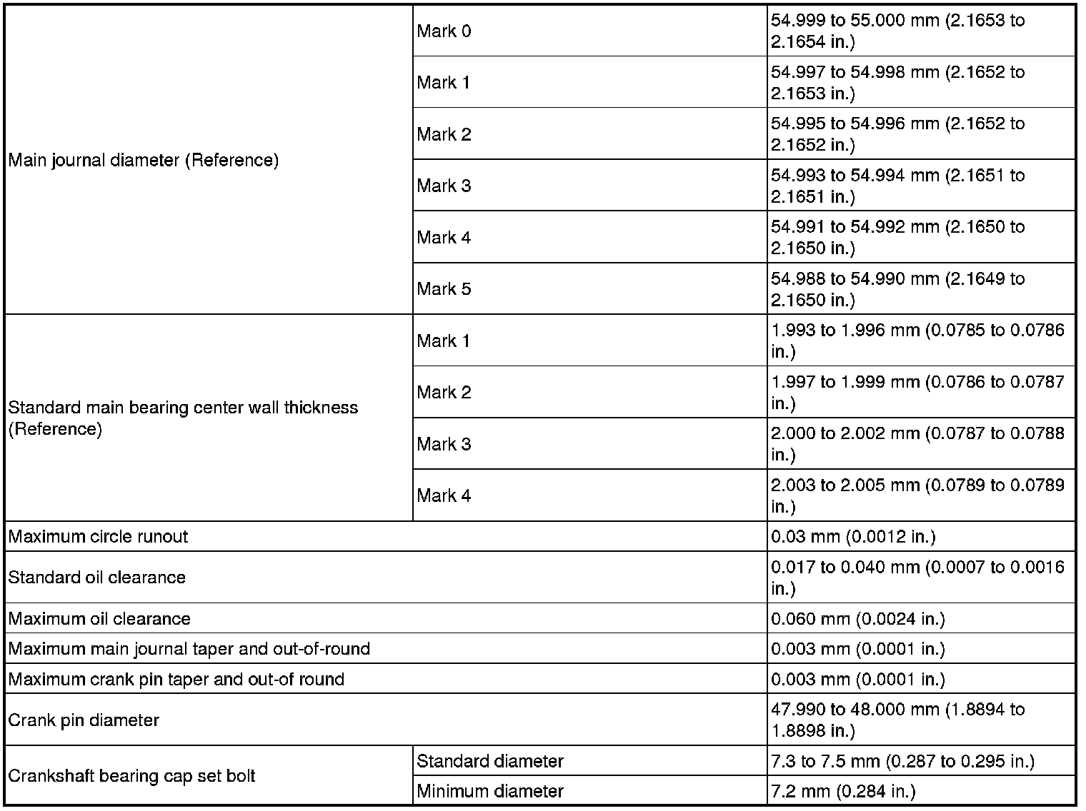 SERVICE SPECIFICATIONS: 2AZ-FE ENGINE MECHANICAL: