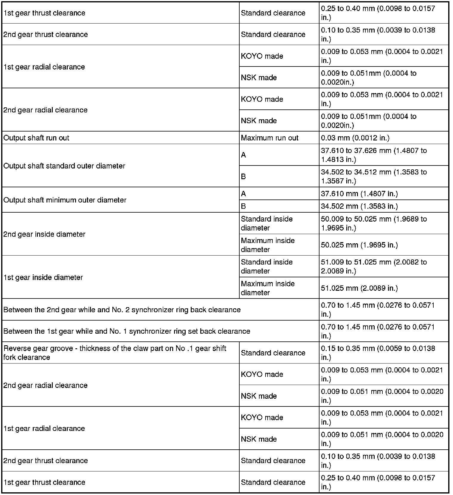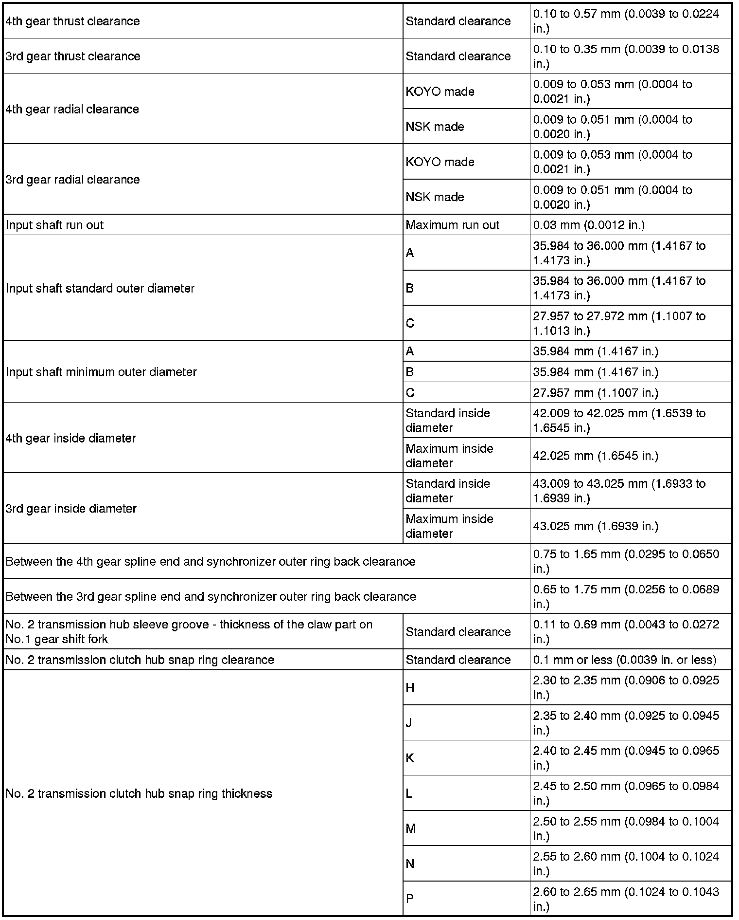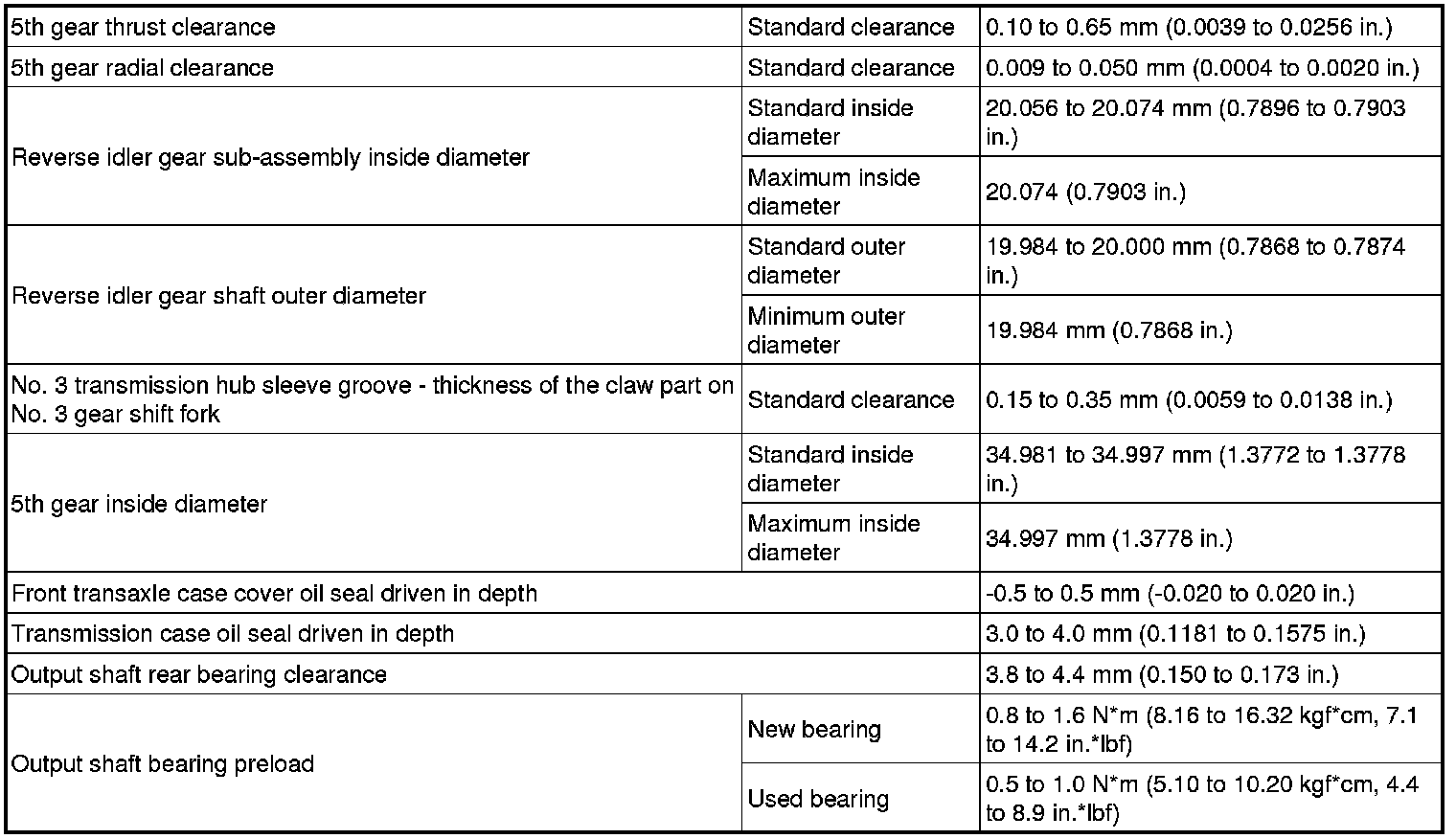 SERVICE SPECIFICATIONS: E351 MANUAL TRANSAXLE: