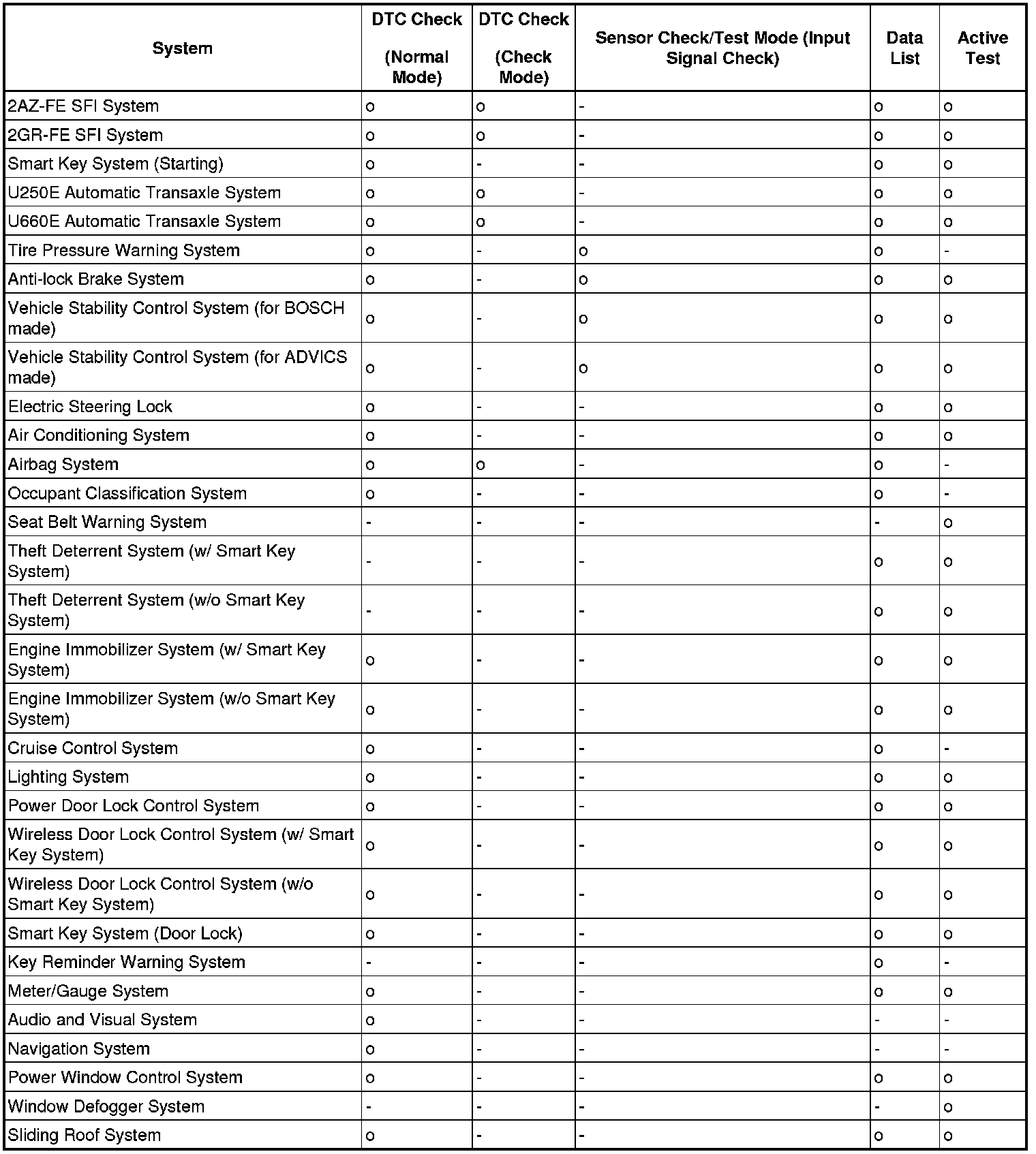 By using these functions, the problem areas can be narrowed down and troubleshooting is more effective. Diagnostic functions are incorporated in the following system in the CAMRY.