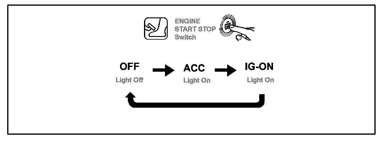 b. Without depressing the brake pedal, press the ENGINE START STOP" switch and confirm the mode changes properly.