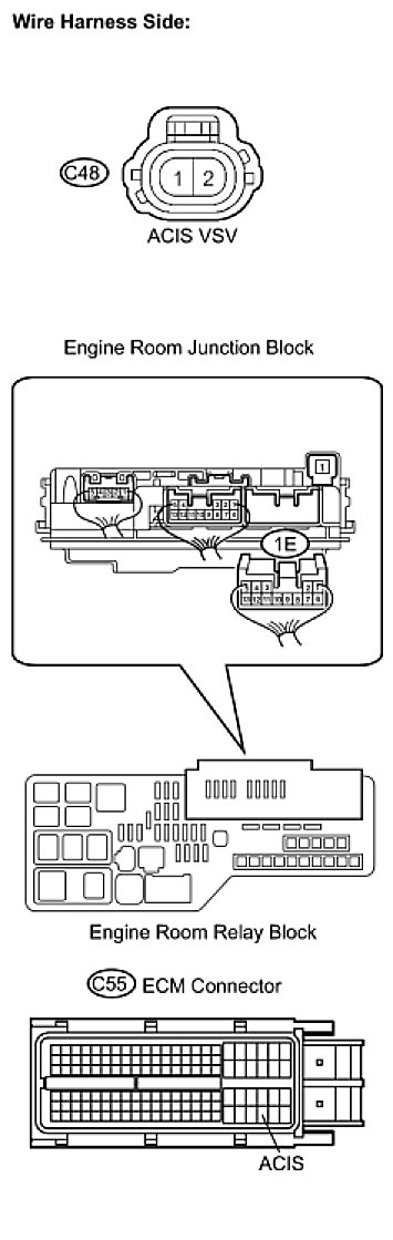 (c) Check the wire harness between the VSV for ACIS connector and EFI relay.