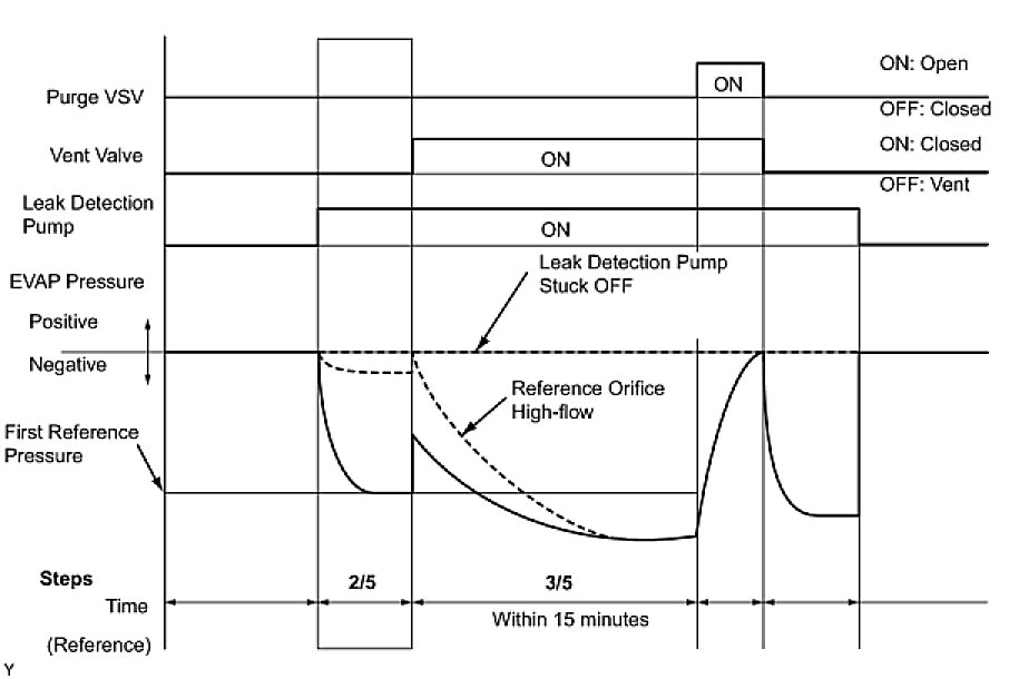 (b) Compare the EVAP pressure in step 3/5 and the second reference pressure (step 5/5).