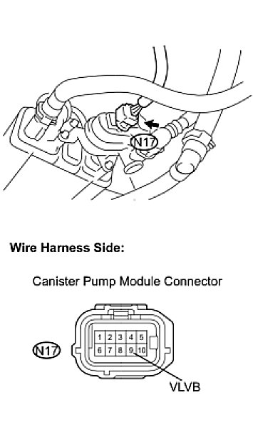 B -- INSPECT CANISTER PUMP MODULE (POWER SOURCE FOR VENT VALVE)
