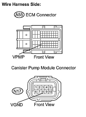 (c) Measure the resistance between the VPMP terminal of the ECM connector and the VGND terminal of the canister pump module connector.