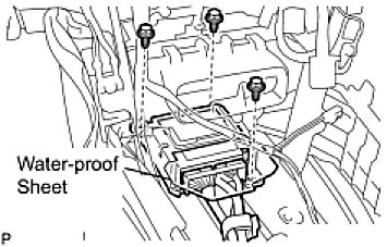 - When installing the center airbag sensor assembly, be careful that the SRS wiring does not interfere with other parts and that it is not pinched between other parts.