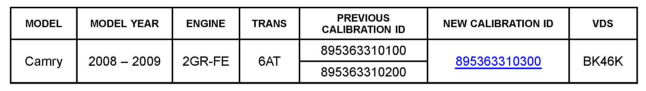 ^ Calibration ID(s) [Refer to the Calibration Identification Chart for the NEW CALIBRATION ID]