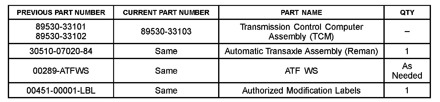 Follow the procedures outlined in TSB No. SS002-07, "Techstream ECU Flash Reprogramming Procedure", and flash the TCM with the NEW calibration file update.