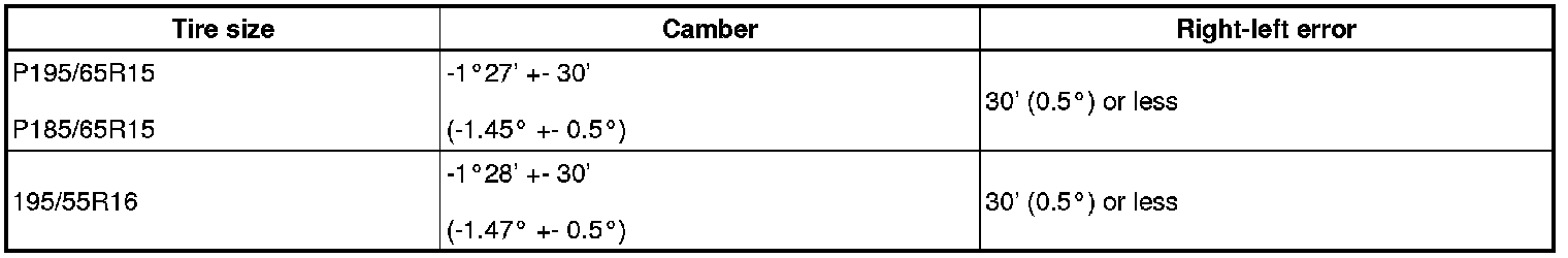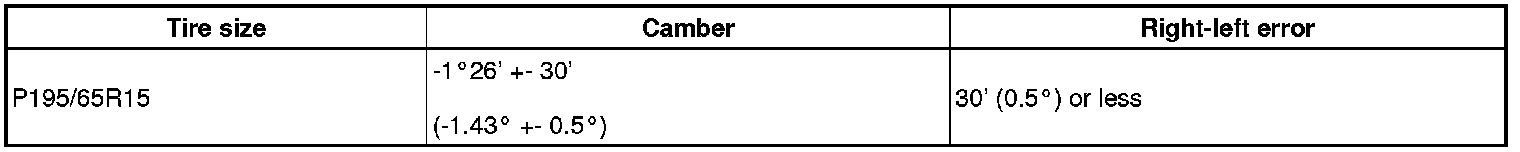 HINT: Camber is not adjustable. If the measurement is not within the specified range, inspect the suspension parts for damage and/or wear, and replace them if necessary.