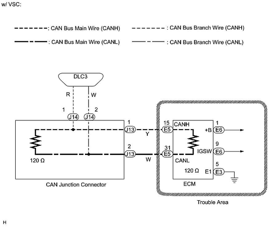 1. CHECK FOR OPEN IN CAN BUS WIRE (ECU MAIN BUS WIRE)