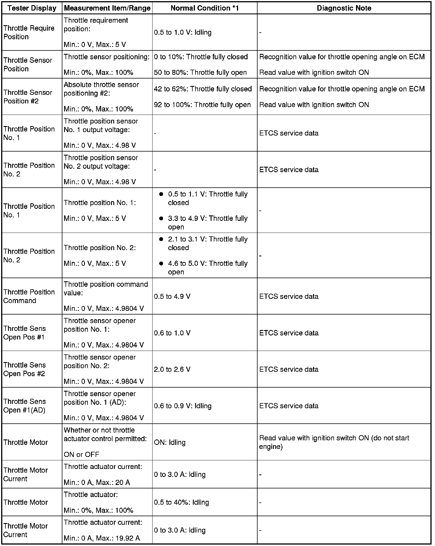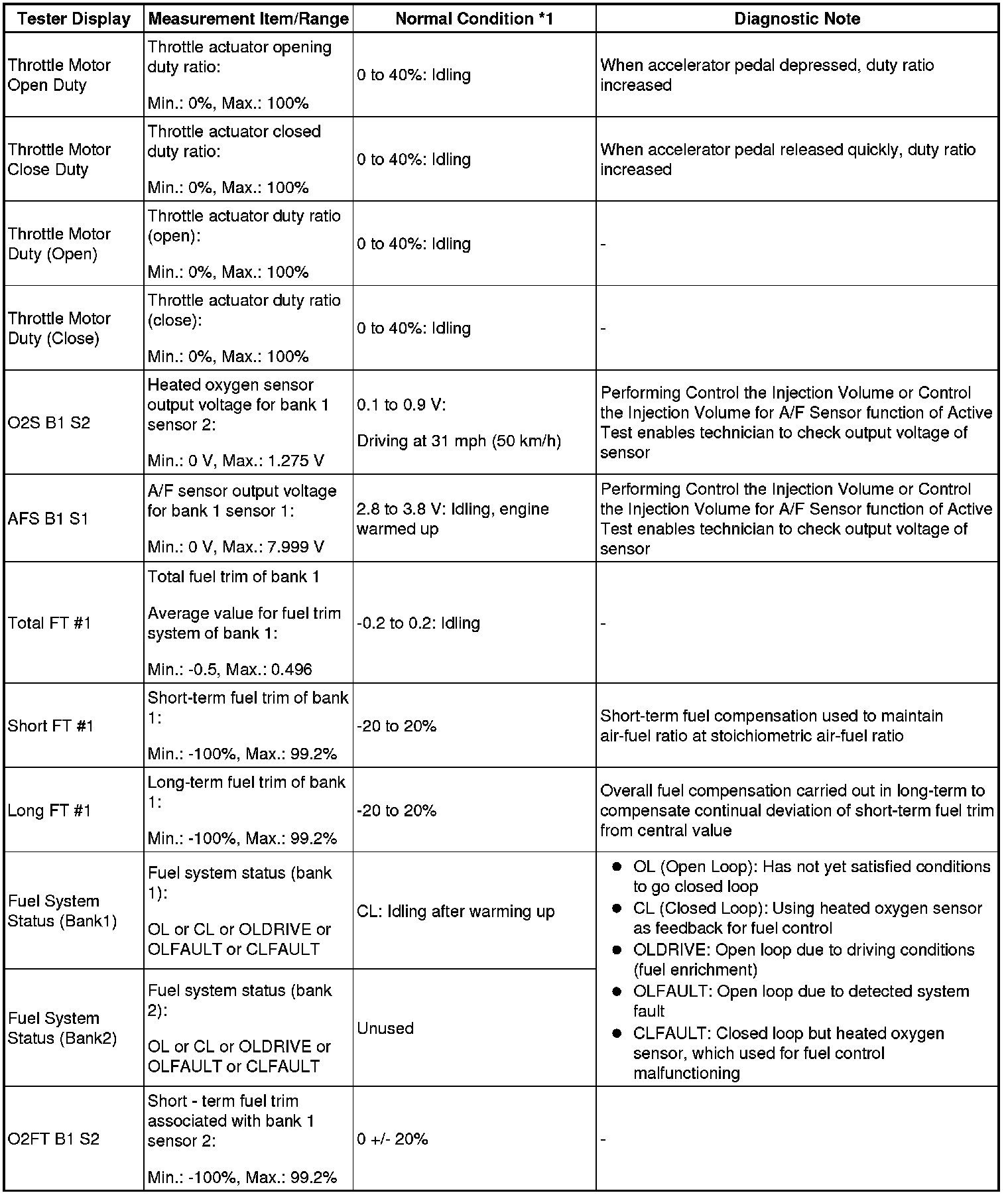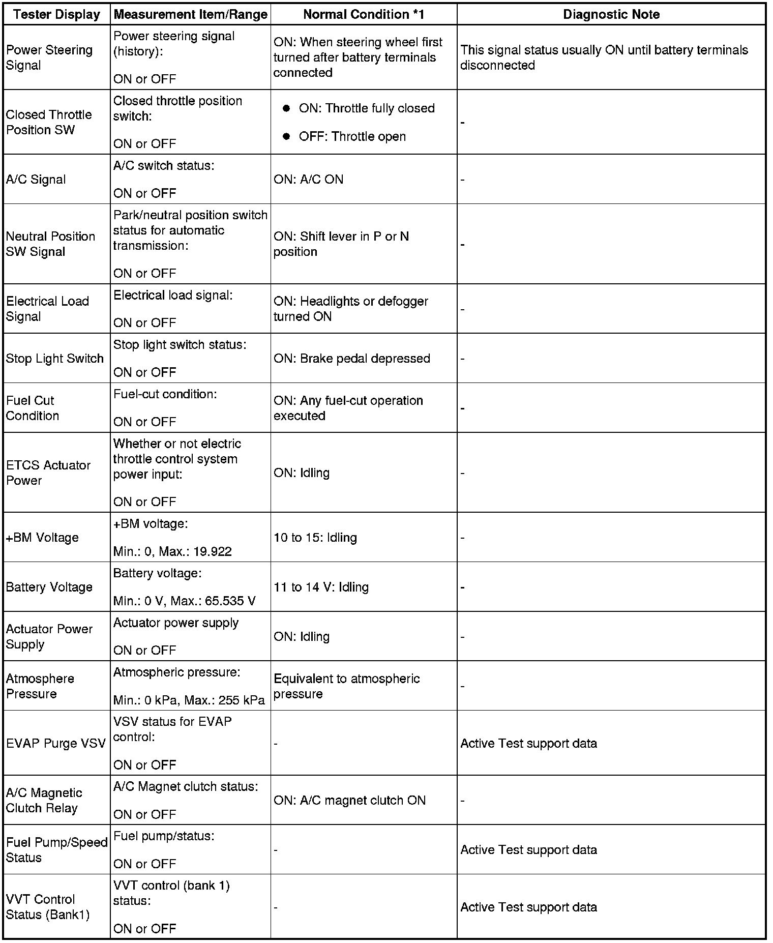 - *1: If no idling conditions are specified, the shift lever should be in the N or P position, and the A/C switch and all accessory switches should be OFF.