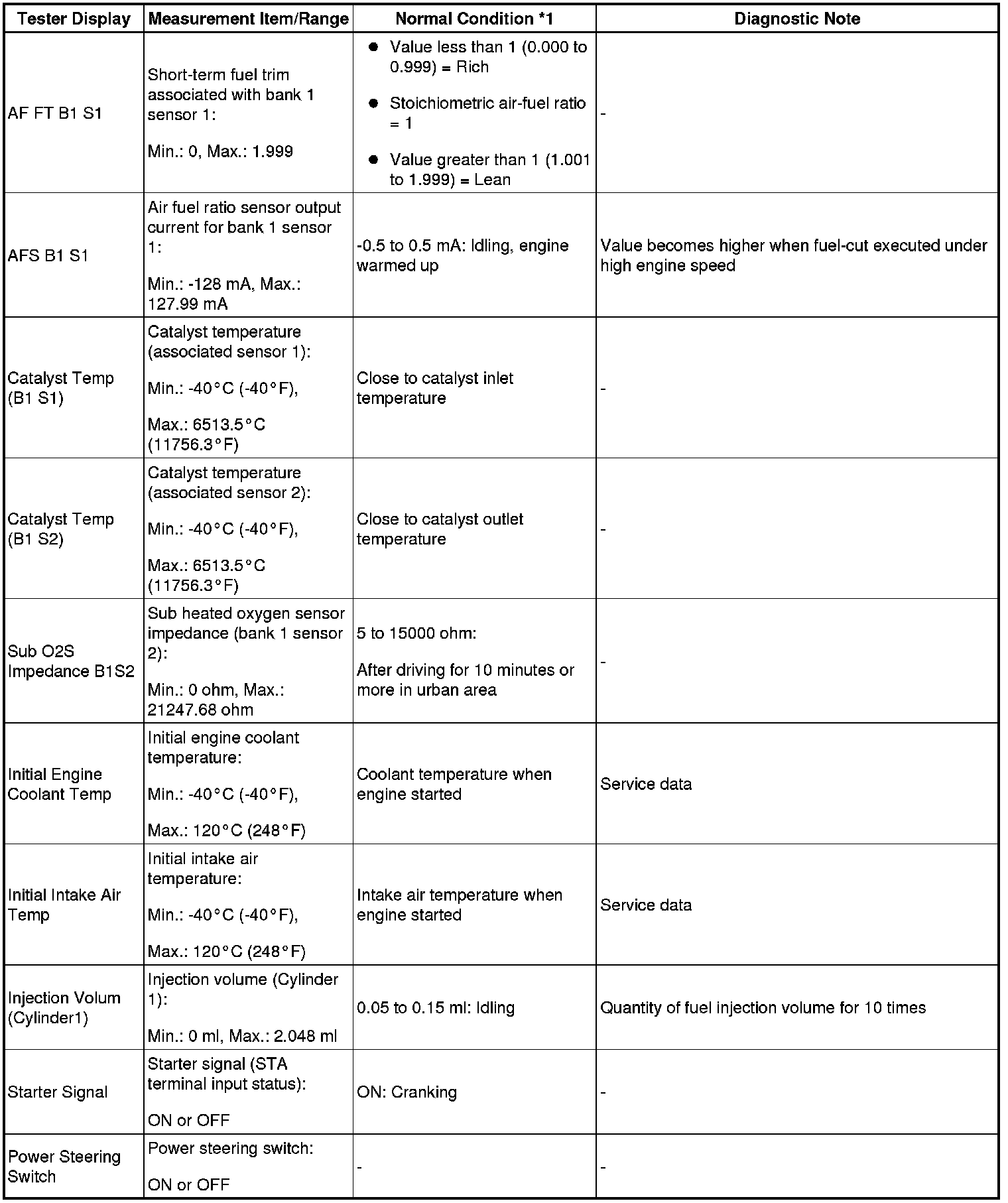 HINT: By reading the Data List displayed on Techstream, you can check values, including those of the switches, sensors, and actuators, without removing any parts. Reading the Data List as the first step of troubleshooting is one method of shortening diagnostic time.