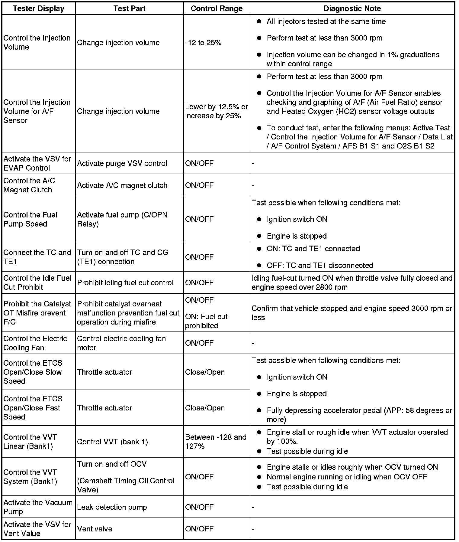 HINT: Performing an Active Test enables components including the relays, VSV (Vacuum Switching Valve), and actuators, to be operated without removing any parts. The Active Test can be performed with Techstream. Performing an Active Test as the first step of troubleshooting is one method of shortening diagnostic time.