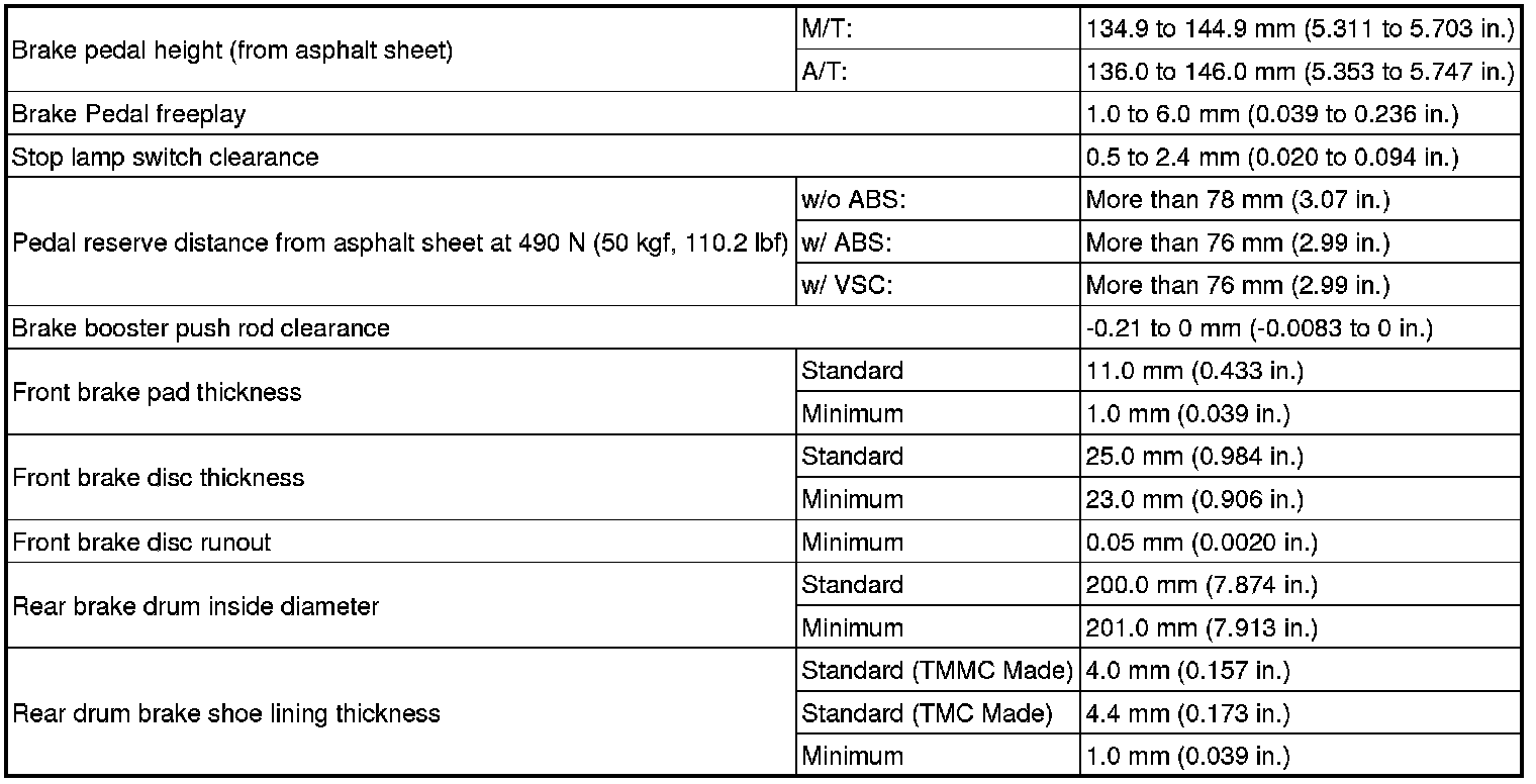 SERVICE SPECIFICATIONS: BRAKE: SERVICE DATA