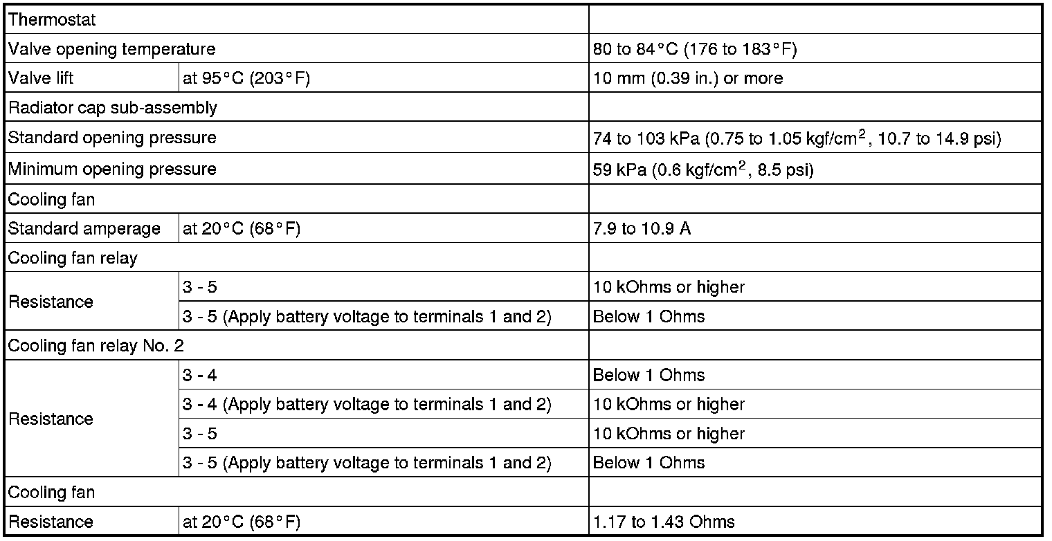 SERVICE SPECIFICATIONS: 1ZZ-FE COOLING: SERVICE DATA