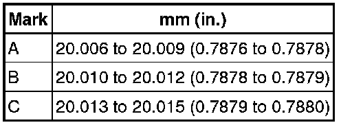 Piston pin outer diameter 20.004 to 20.013 mm (0.7876 to 0.7879 in.)