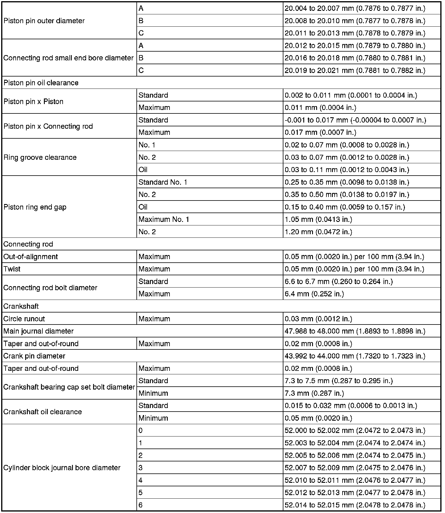 SERVICE SPECIFICATIONS: 1ZZ-FE ENGINE MECHANICAL: SERVICE DATA