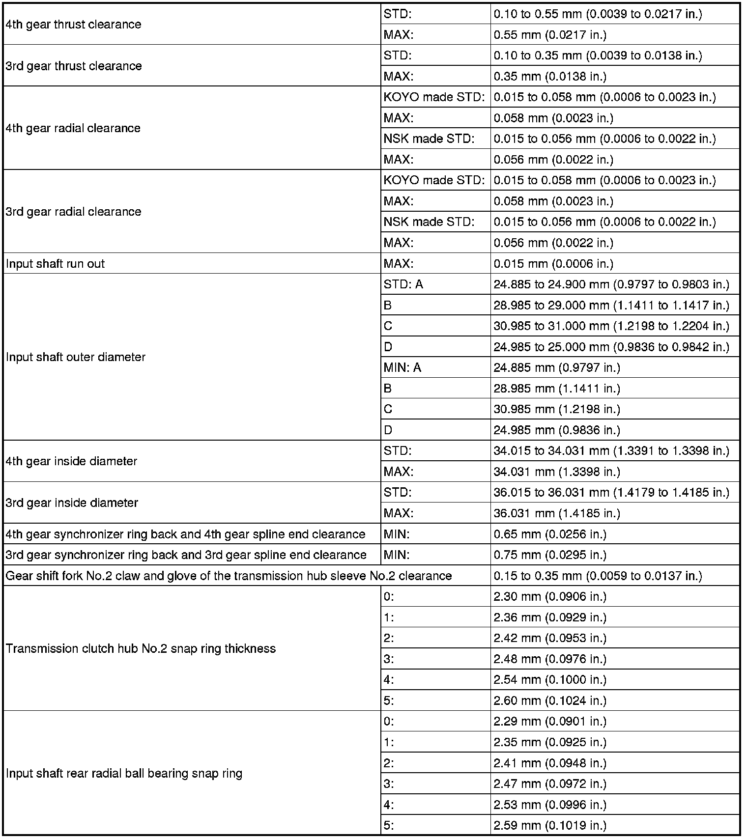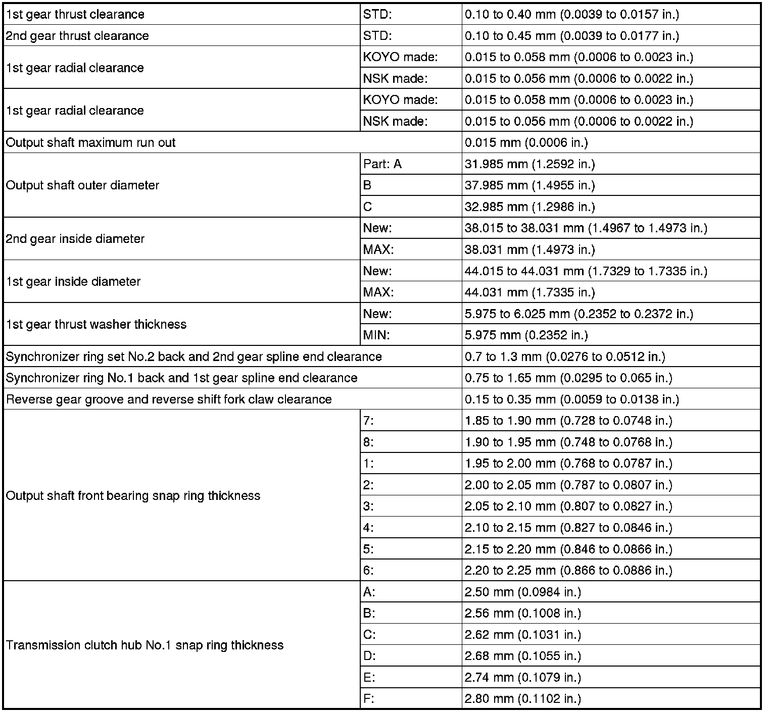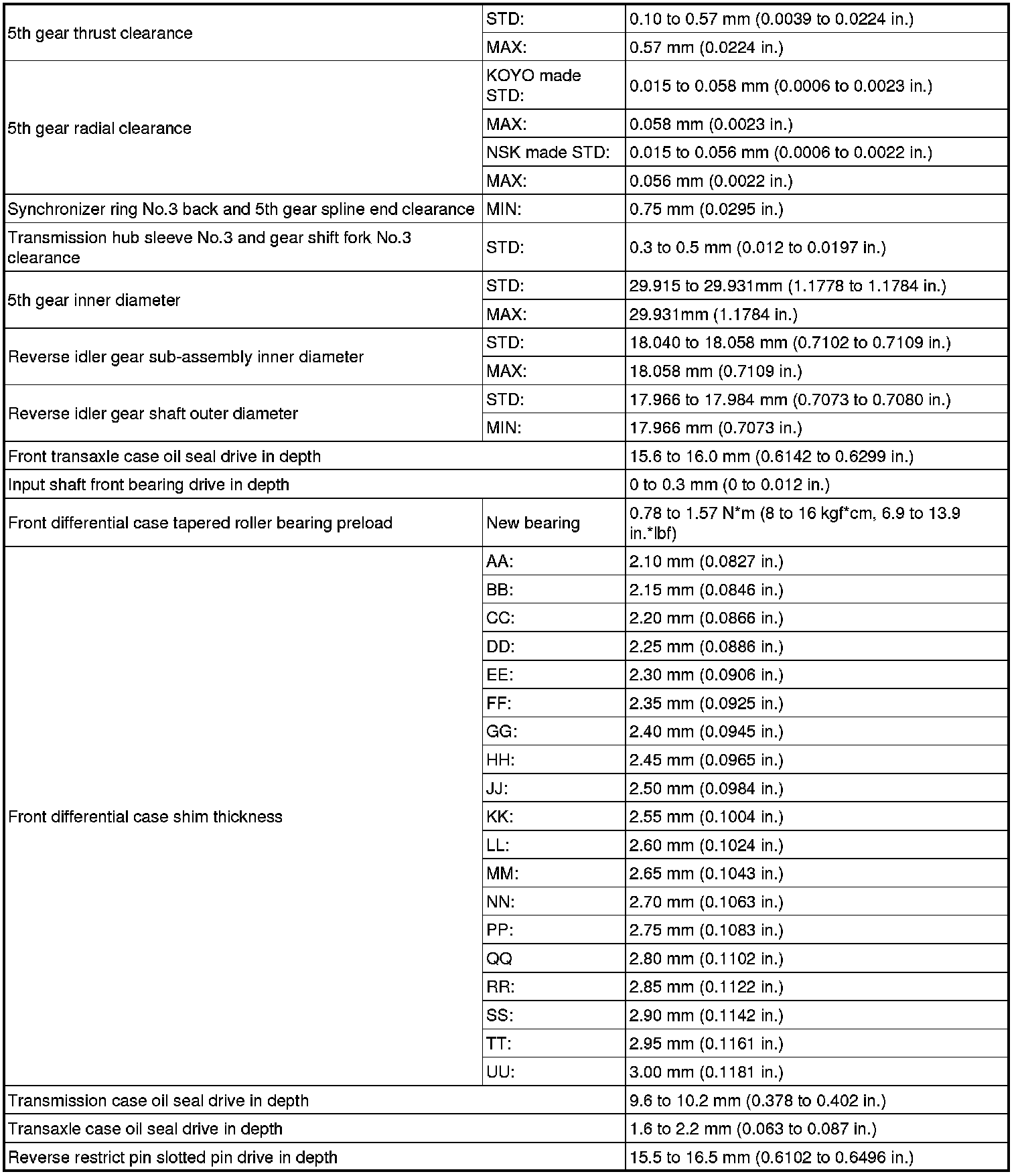 SERVICE SPECIFICATIONS: C59 MANUAL TRANSAXLE: SERVICE DATA