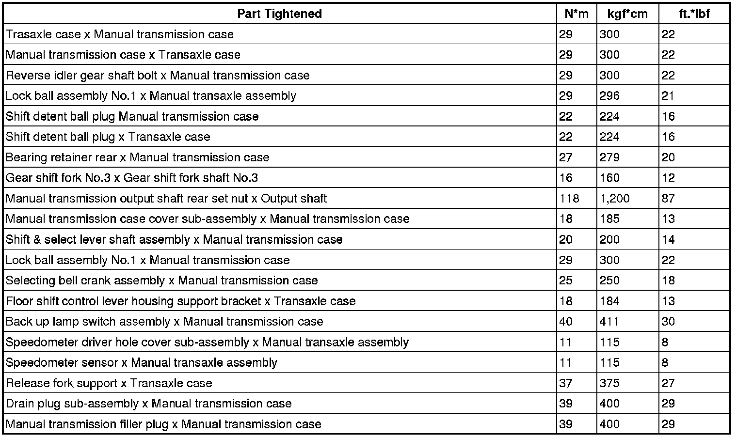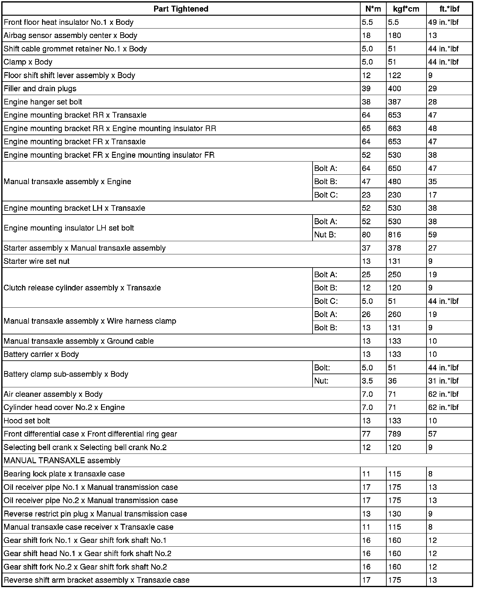 SERVICE SPECIFICATIONS: C59 MANUAL TRANSAXLE: TORQUE SPECIFICATIONS