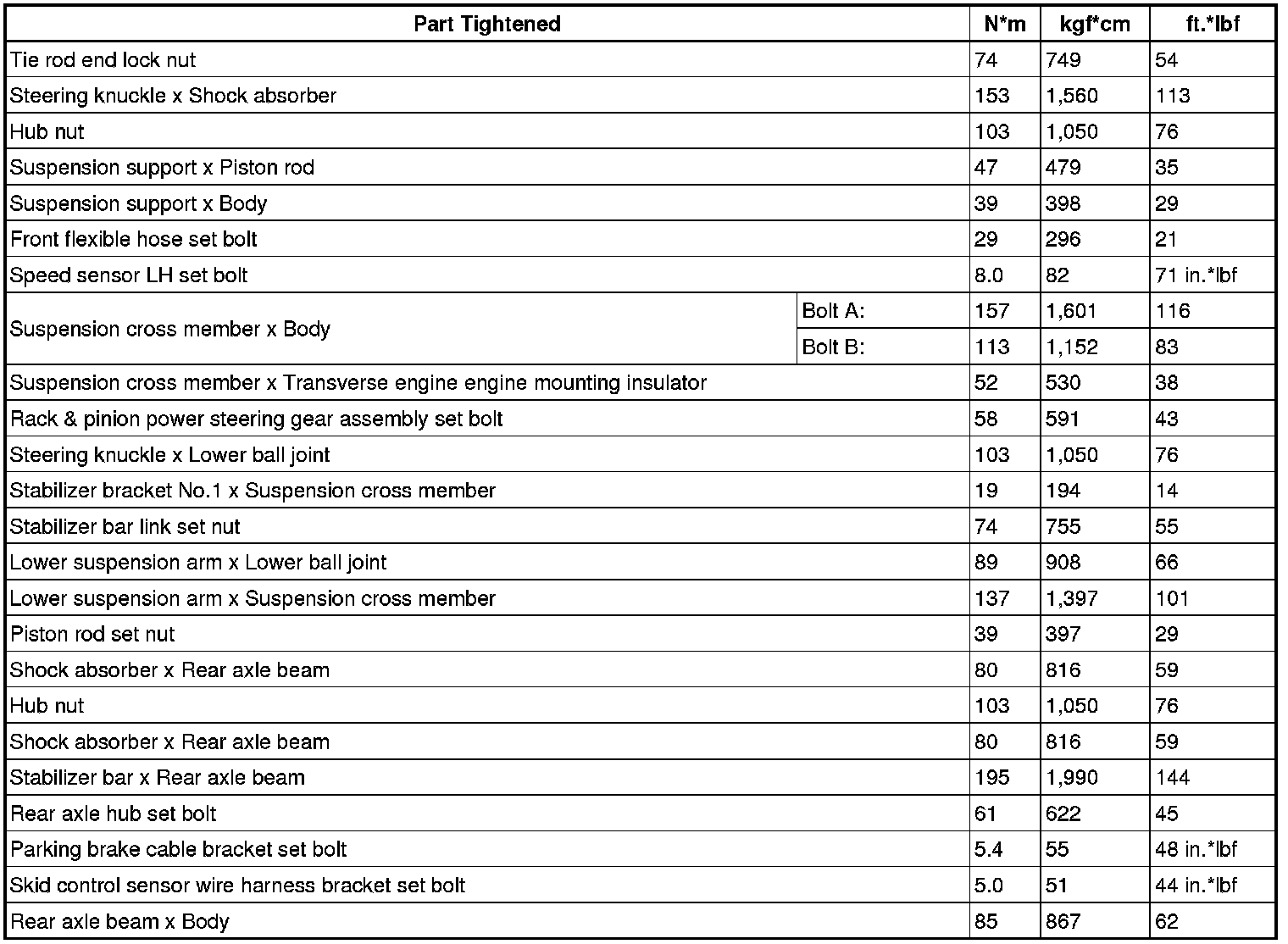 TORQUE SPECIFICATIONS