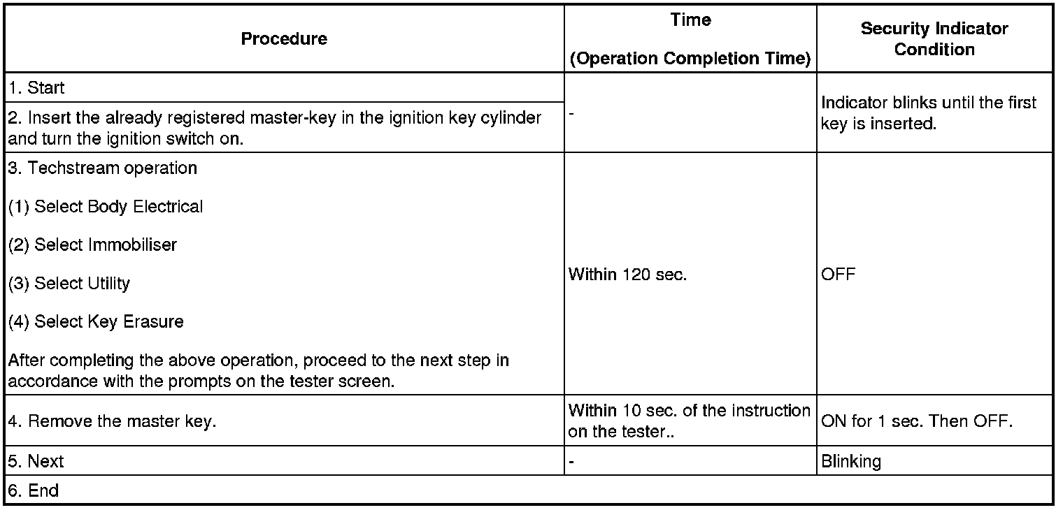 - A brief outline of procedures for key code registration is shown above. For detailed information, please refer to the screen of Techstream.