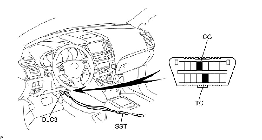 (1) Using SST, connect terminals TC and CG of the DLC3.