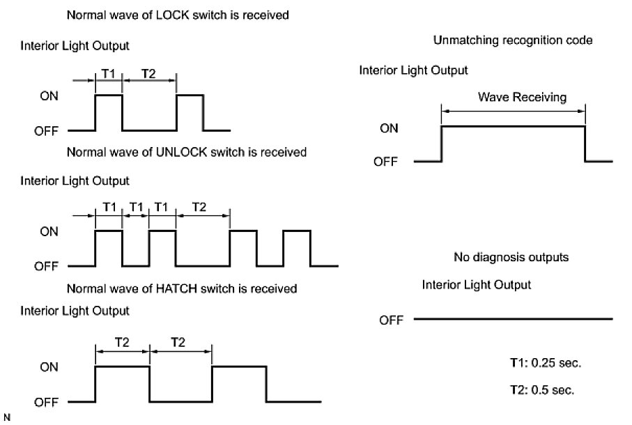 - When the normal wave of the door LOCK and UNLOCK switch (interior light blinking) is received, go to step A.