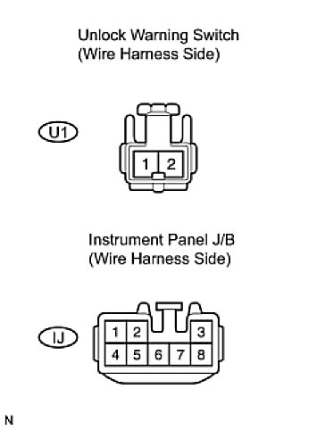11. CHECK HARNESS AND CONNECTOR (UN-LOCK WARNING SWITCH - INSTRUMENT PANEL J/B - BODY GROUND)