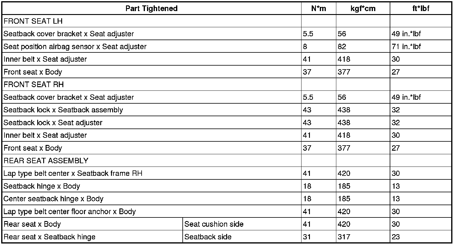TORQUE SPECIFICATIONS