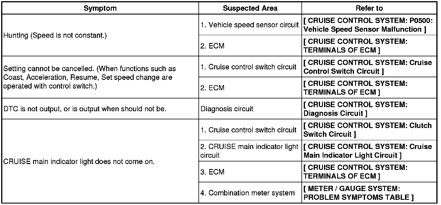 If a normal system code is displayed during the DTC check but the problem still occurs, check the circuits for each problem symptom in the order given in the table below and proceed to the relevant troubleshooting procedure.