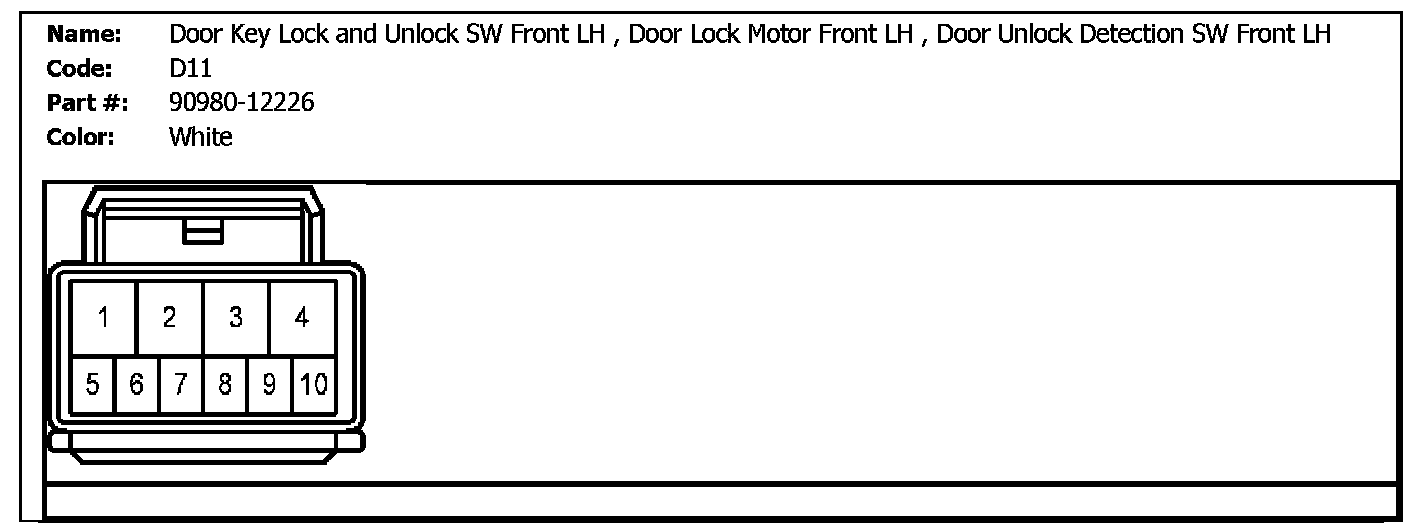 D11 (Door Key Lock And Unlock SW Front LH, Door Lock Motor Front LH, Door Unlock Detection SW Front LH):
