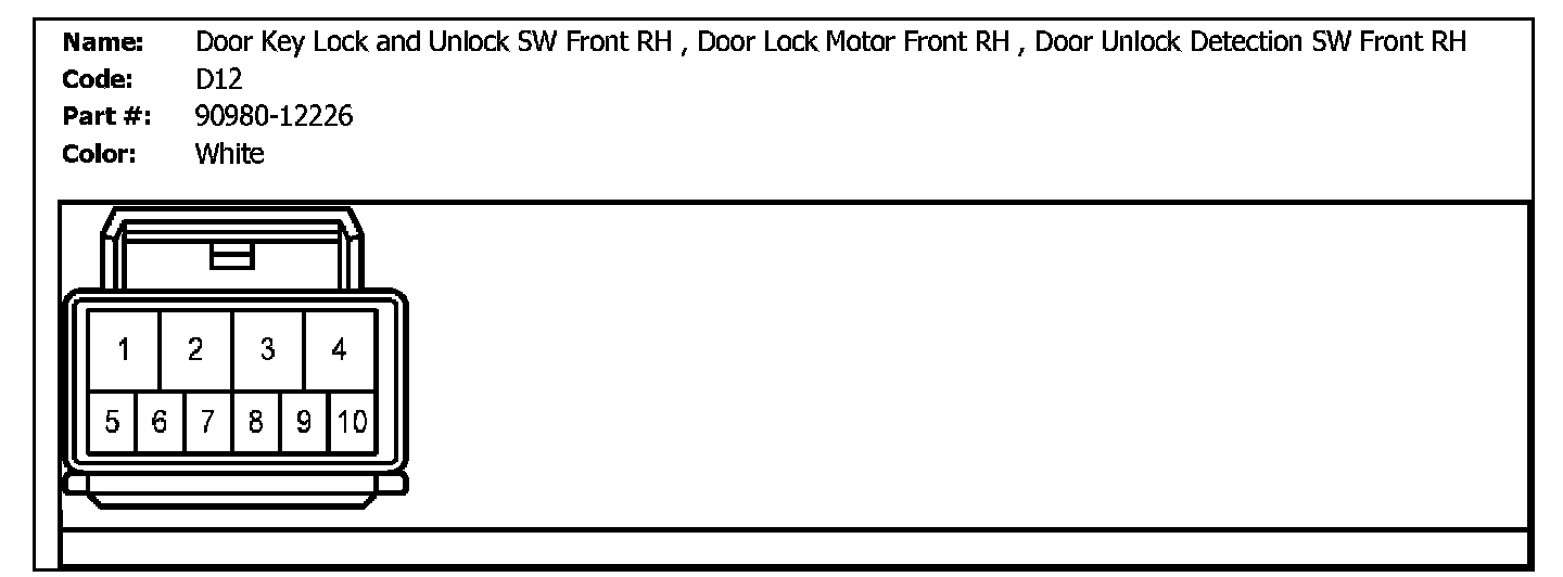 D12 (Door Key Lock And Unlock SW Front RH, Door Lock Motor Front RH, Door Unlock Detection SW Front RH):