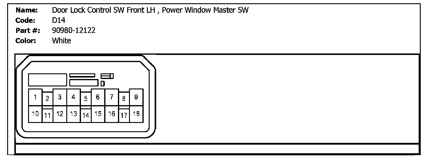 D14 (Door Lock Control SW Front LH, Power Window Master SW):