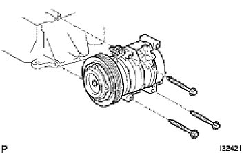 (b) Remove the 3 bolts and compressor and magnetic clutch.