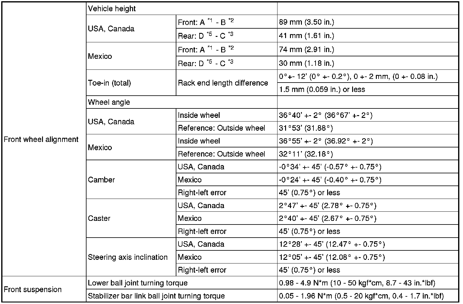 SERVICE SPECIFICATIONS: SUSPENSION: