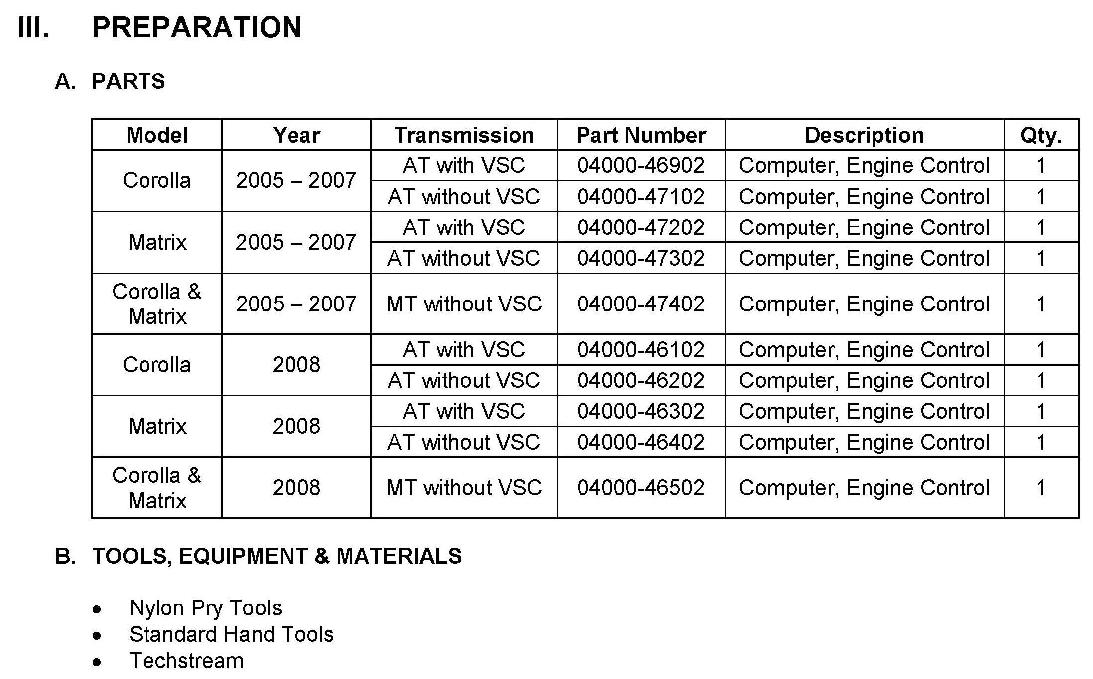 Recall - ECM Replacement