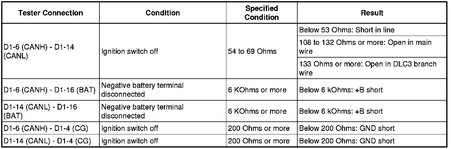 D -- CHECK FOR SHORT IN CAN BUS WIRES (DLC3)