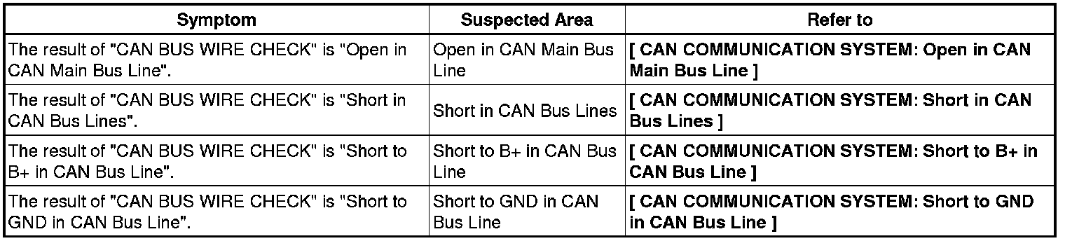 RESULT LIST OF CHECK CAN BUS LINE (w/ VSC)