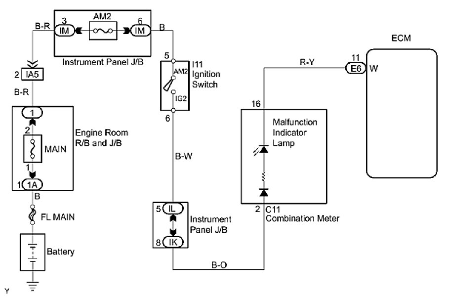 By turning the ignition switch to the ON position, power is supplied to the MIL circuit, and the ECM provides the circuit ground which illuminates the MIL.