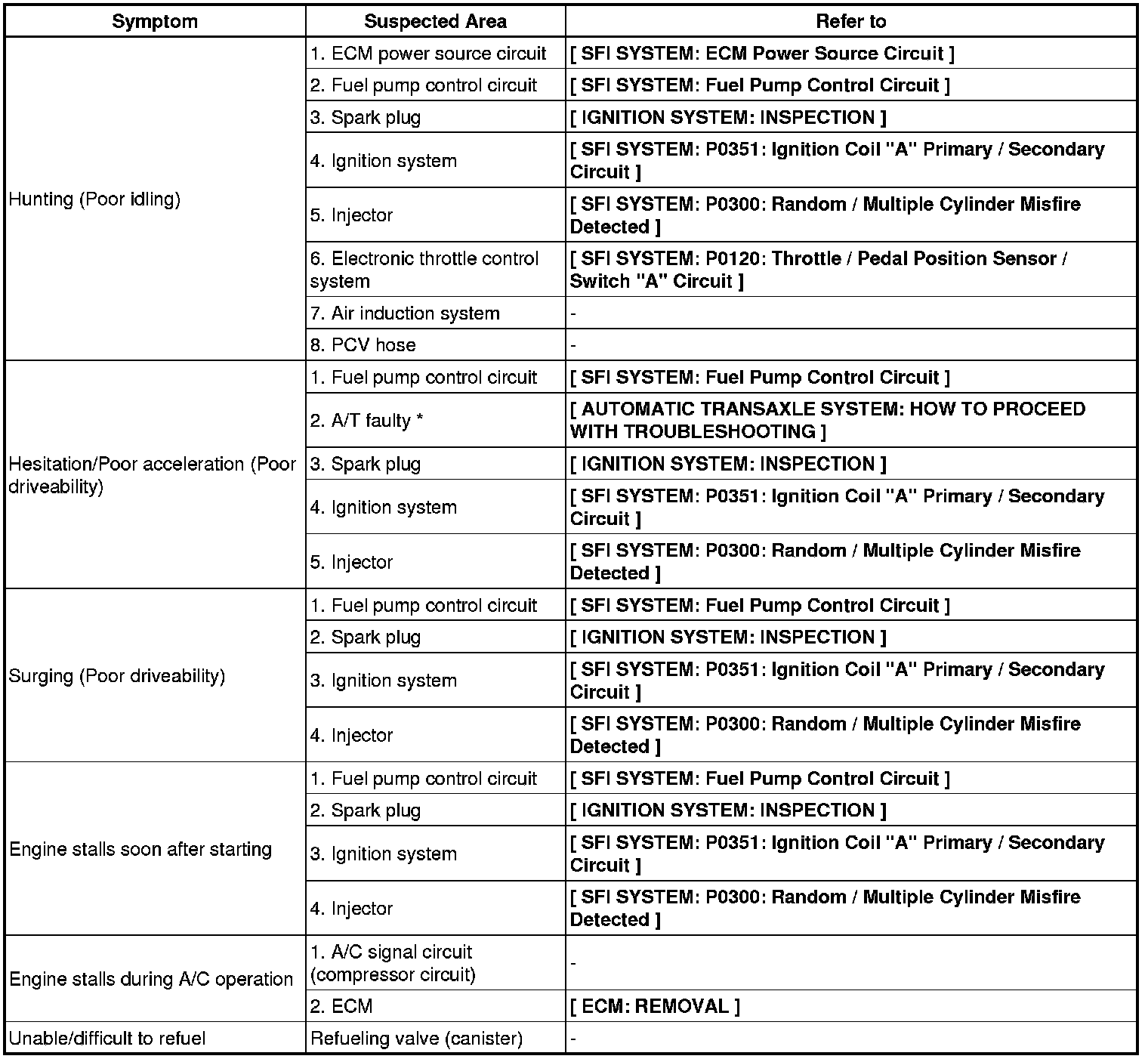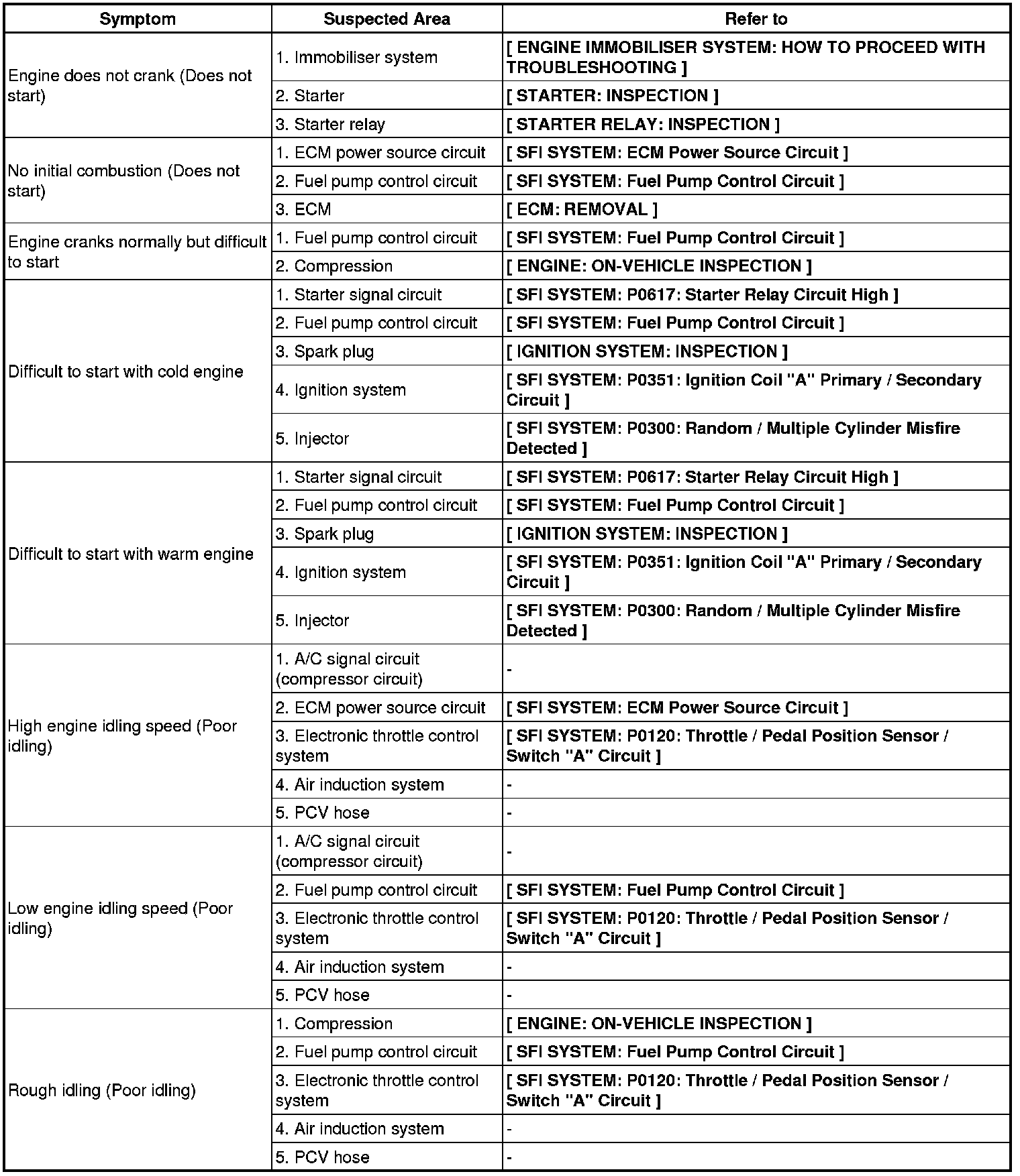 HINT: When a malfunction is not confirmed by a DTC (Diagnostic Trouble Code) check and the cause of problem cannot be identified through a basic inspection, troubleshoot according to the priority order indicated in the table below.