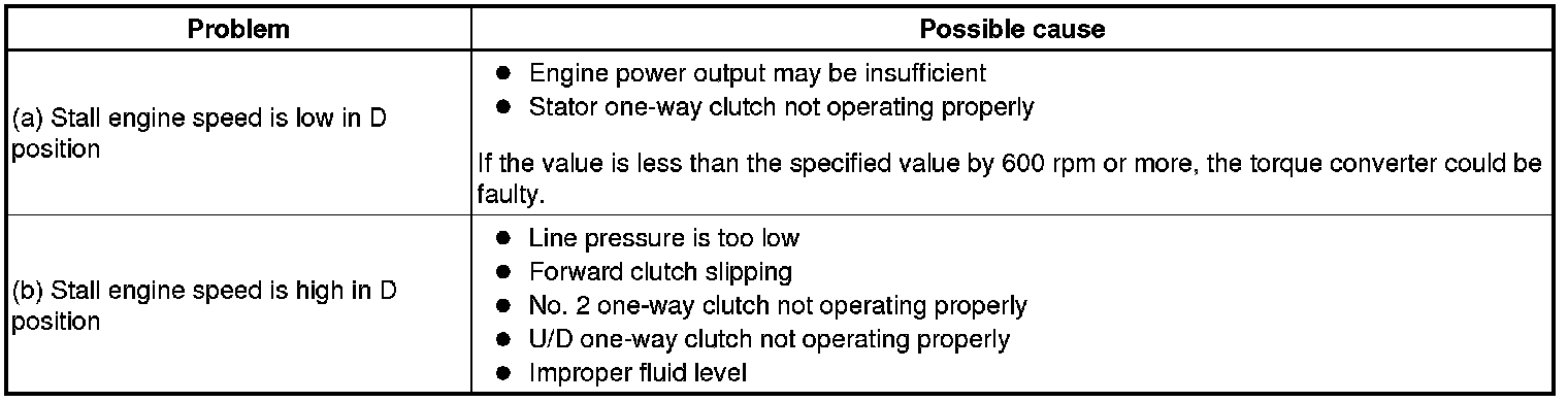 The object of this test is to check the overall performance of the transaxle and engine by measuring the stall speeds in the D position.