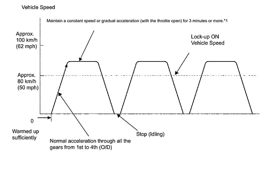 HINT: *1: Drive at such a speed in the uppermost gear, to engage lock-up. The vehicle can be driven at a speed lower than that in the above diagram under the lock-up condition.