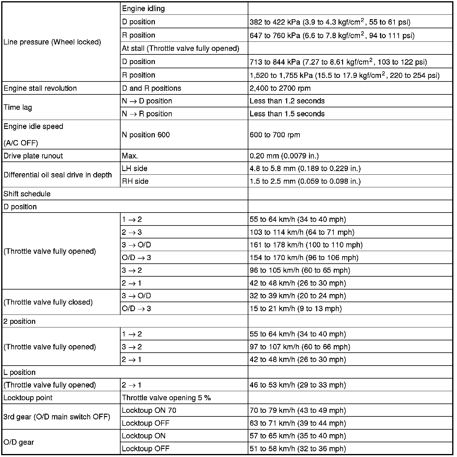 SERVICE SPECIFICATIONS: A246E AUTOMATIC TRANSAXLE: